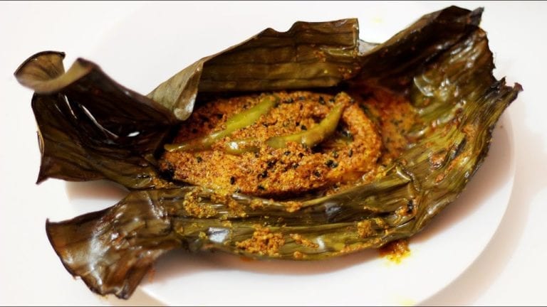 Read Time: 2 minutesViews: 1,772 Machcha Patropoda is a traditional cuisine of Odisha. The fish is marinated with a freshly ground masala and wrapped in banana leaf and cooked for a few minutes till it’s soft and tender. Ingredients for the masala: 1 tsp ginger, 1 tsp garlic, 1 tsp cumin seeds, 1 tsp mustard seeds, 2-3 whole … Continue reading Maachha Patropoda (Baked Fish in Banana Leaf)